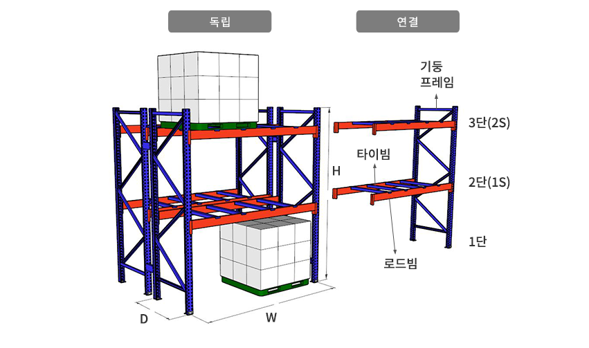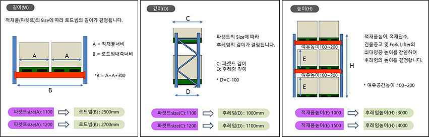 3.세로(D) : 적재파렛트의 깊이를 고려하여 후레임의 깊이를 결정합니다.